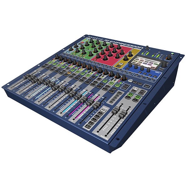 Disponibles sous trois formats : 32, 24 et 16 faders, les consoles numériques Si Expression proposent une exceptionnelle puissance de traitement numérique, permettant le mixage d’un total de 66 entrées vers 35 bus et 16 sorties analogiques, en utilisant une interface aussi simple et intuitive qu’une console traditionnelle. Une rangée d’encodeurs offre un accès immédiat au réglage de Gain, de Pan et de filtrage coupe-bas, sans avoir à sélectionner la voie. La fonction TOTEM permet, en pressant un seul bouton, d’affecter aux faders le mixage des entrées vers les bus de sorties. Vous accédez ainsi immédiatement à vos mixages sans navigation complexe. Le procédé D.O.G.S (Direct Output Gain Stabilisation) permet de compenser automatiquement les variations de gain d’entrée sur les bus de départs et les sorties directes. Ce procédé permet, quand plusieurs consoles partagent la meme entrée, de garder inchangé un niveau de départ même quand le gain d’entrée est ajusté.