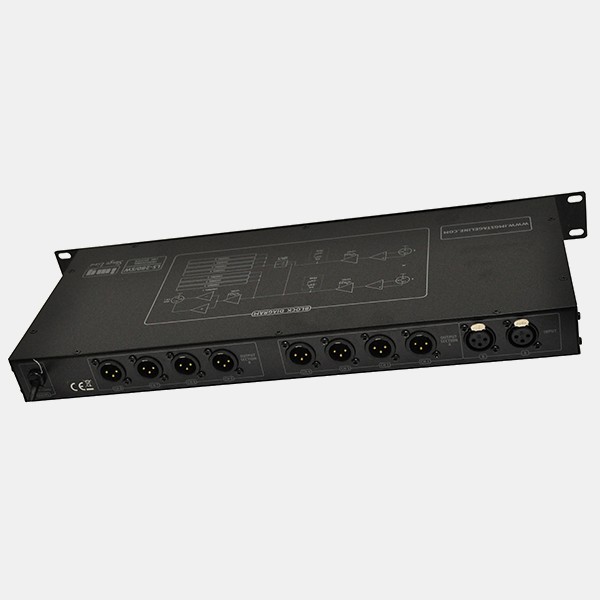 Répartiteur Stéréo / 2 entrées séparées / Modes de fonctionnement sélectionnables : 1x entrée A sur 4 sorties et 1 x entrée B sur 4 sorties ou 2 x entrée A sur 8 sorties / Connexions XLR et réglage de gain pour toutes les entrées et sorties / Affichage de signal et Peak pour les entrées par double LEDréglage de gain / 2 voies entrées sur XLR / 2 x 4 ou 8 sorties sur XL / Affichage par double led du signal et des cretes / 19 pouces 1 U (44,5 mm) / Dimensions : 482 x 48 x 205 mm / Poids : 2,3 Kgs Durée de la garantie : 3 ans